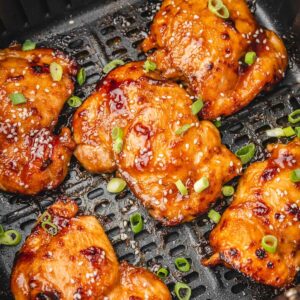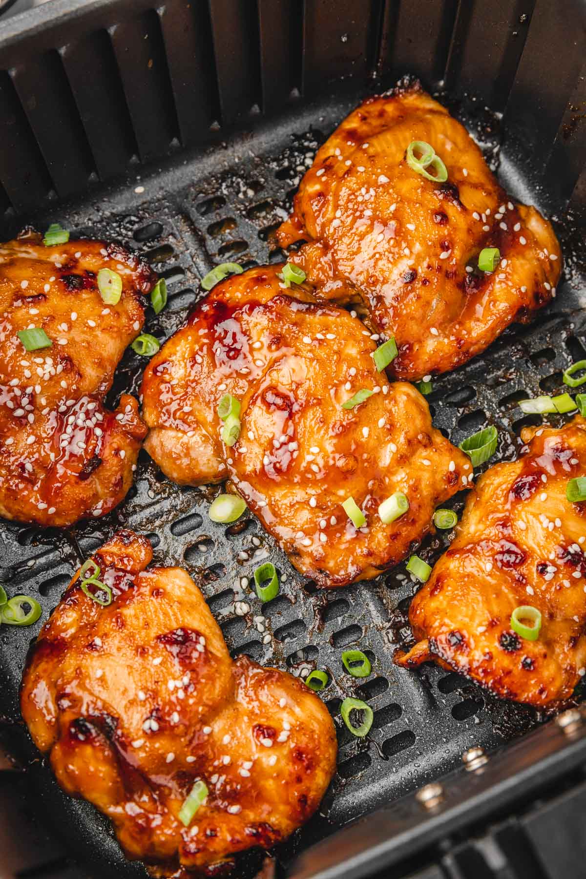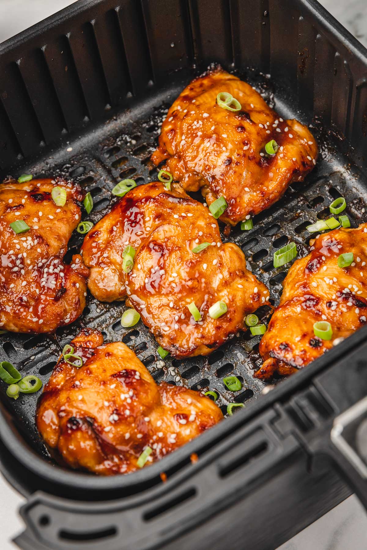 The tender chicken thighs are marinated in teriyaki sauce and then air fried until beautifully cooked and caramelized. These are so sticky and mouthwatering that you won't be able to resist having more.
