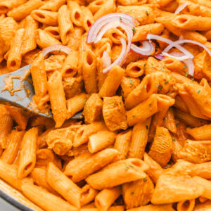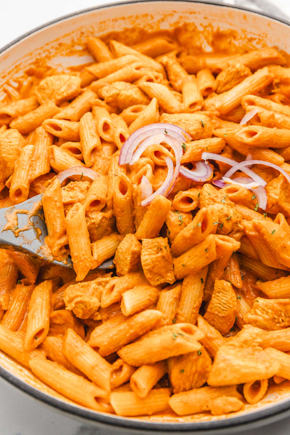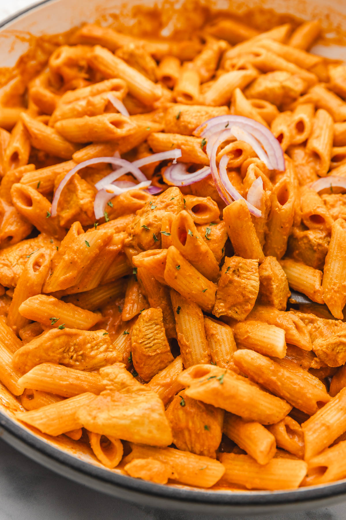 Pasta: I used penne pasta for this recipe, the tubular shape is perfect for the creamy sauce. It holds the sauce so nicely and every mouthful with the chicken pieces is full of flavor.