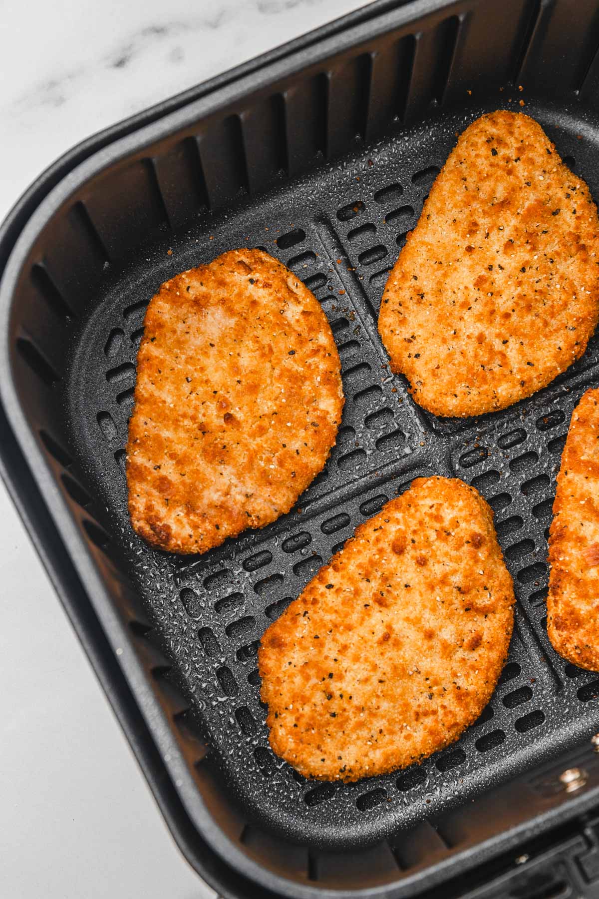 Magic of the air fryer: One thing the air fryer does best is cook frozen food perfectly and evenly. Your breaded chicken breast comes out crispy on the outside and juicy, tender and moist on the inside.
