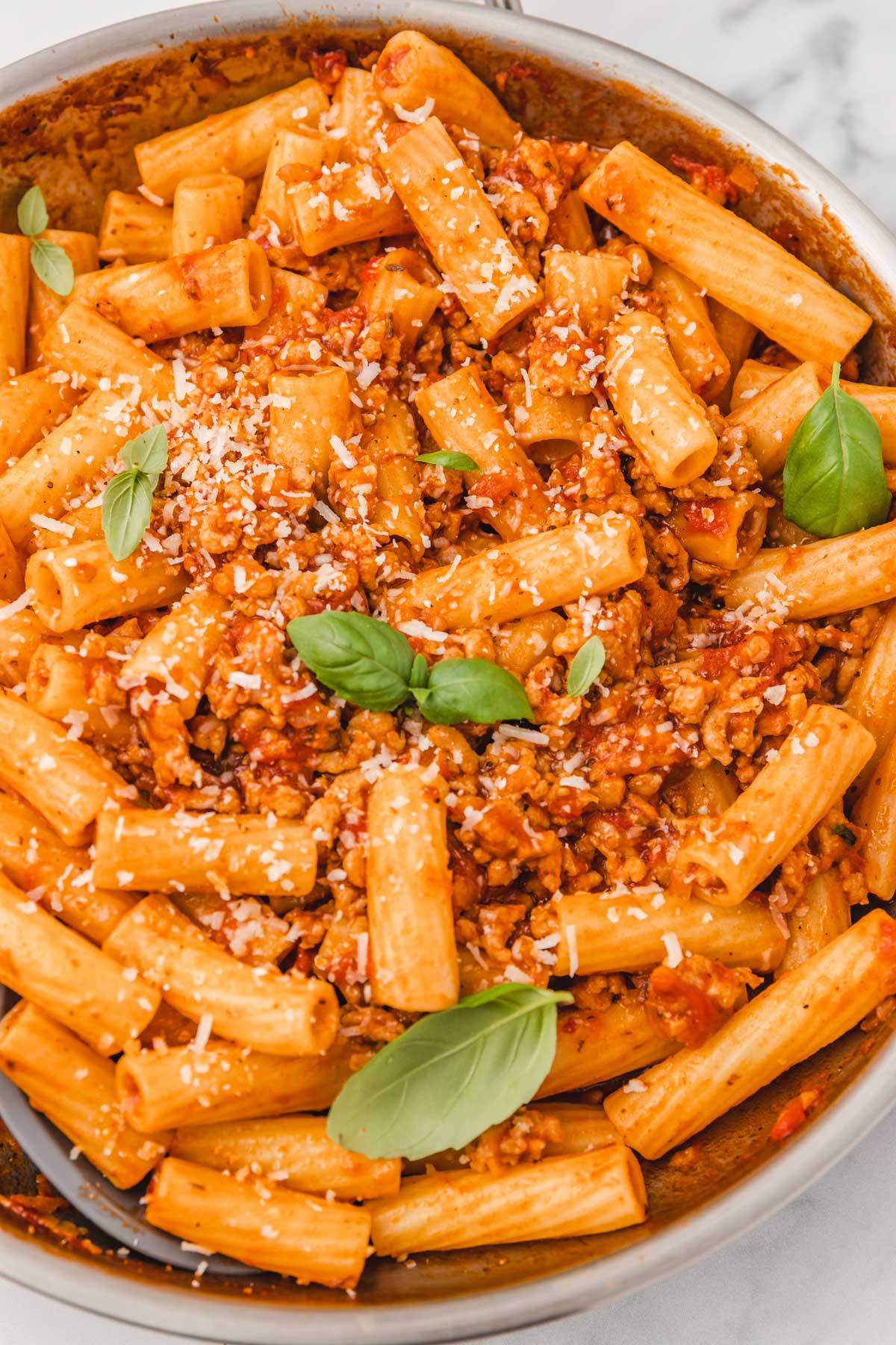 Yes, you can make this chicken pasta in one pan which makes cleanup easy. Simply make the recipe in a pot (or Dutch oven) instead of a skillet. Follow this rigatoni bolognese recipe for how to make it.