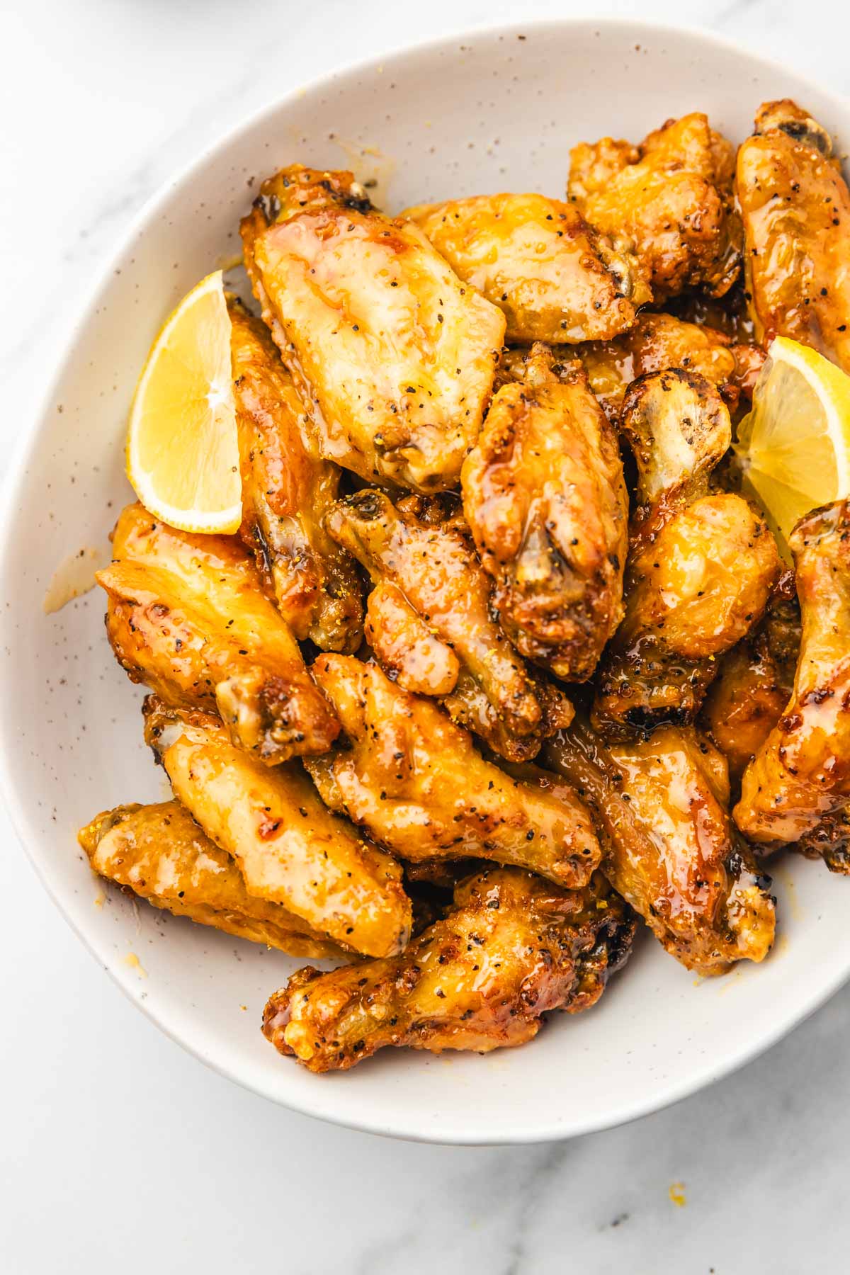 Hot honey lemon pepper wings! Crispy chicken wings tossed in hot honey lemon pepper sauce with a subtle hint of heat and plenty of sweetness, these wings are sure to be the star of your next gathering. Delicious and packed full of zesty flavors you can't resist.